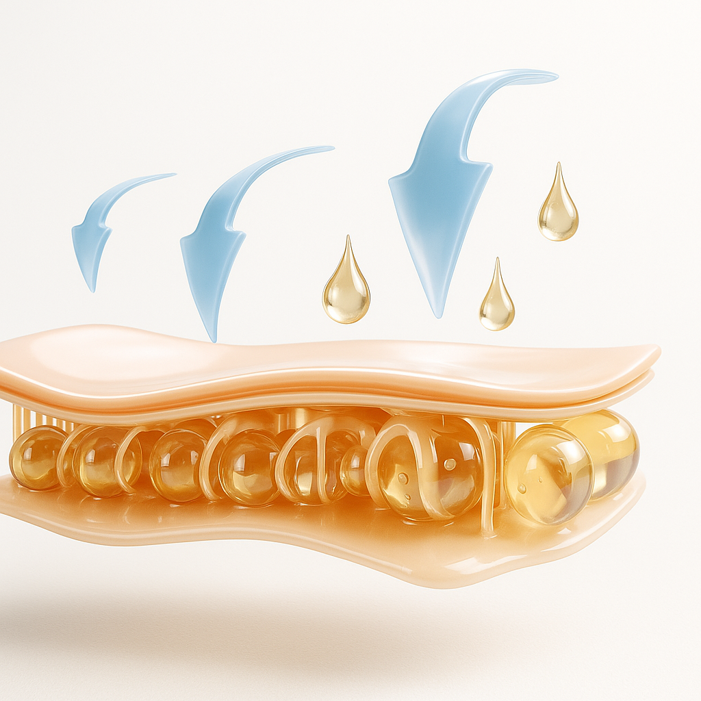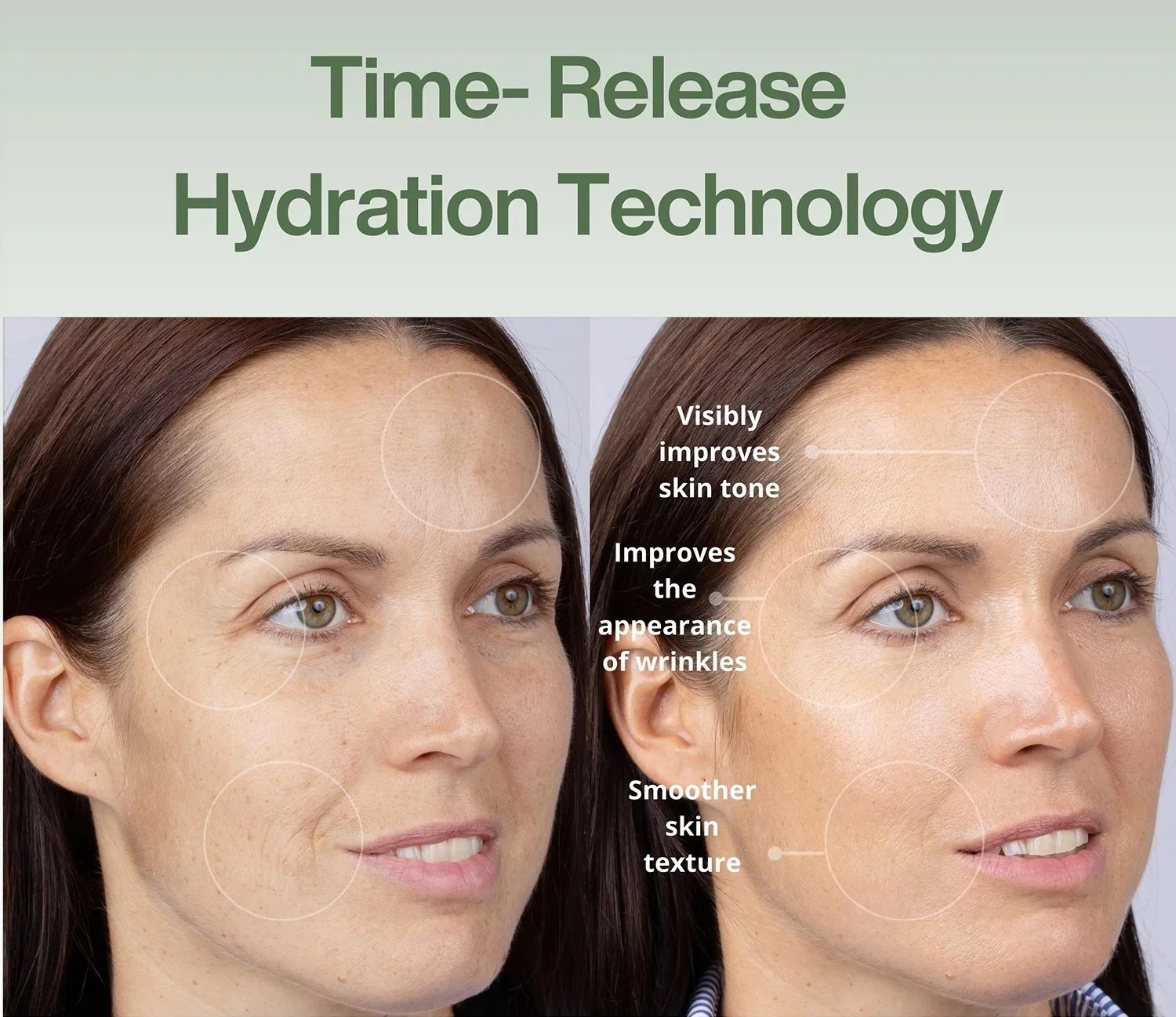 Designed to deliver continuous moisture throughout the day, our time-release hydration system helps lock in water and restore the skin’s natural balance. This gradual, long-lasting action maintains comfort, resilience, and soft, healthy glow- without clogging pores or leaving residue.